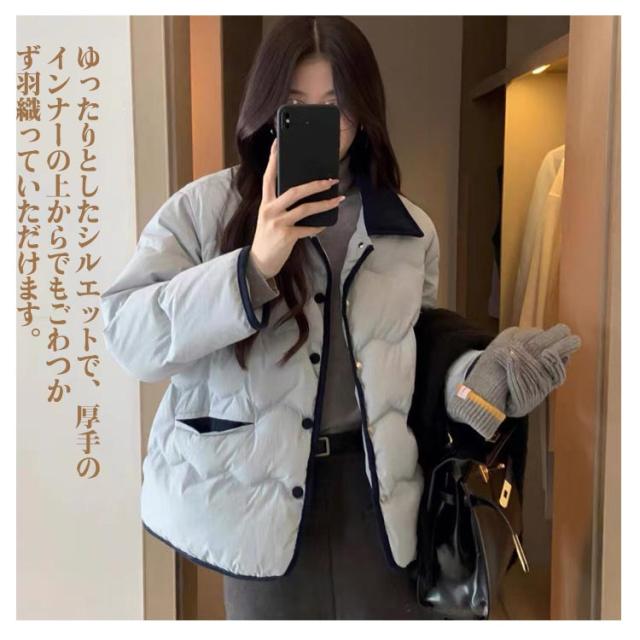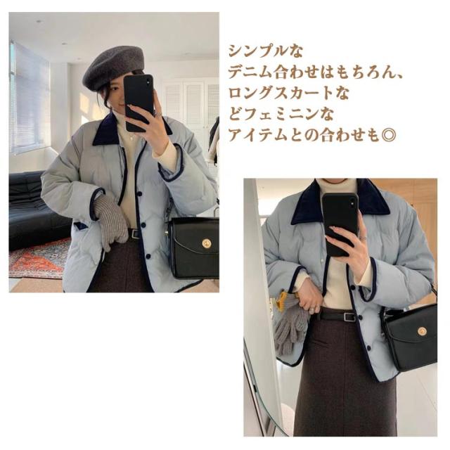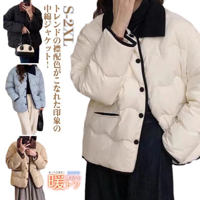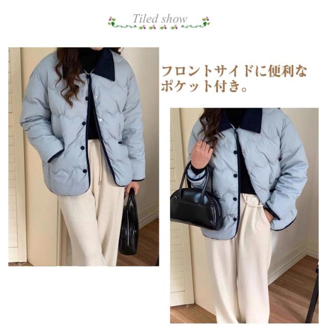 防風 ブルゾン カジュアル 中綿ジャケット レディース ダウンジャケット フェイクダウンジャケット 秋 おしゃれ コート ゆったり 保温 軽量 襟配色 暖かい 防寒 中綿コート 通勤 通学 ダウンジャケット 冬 春