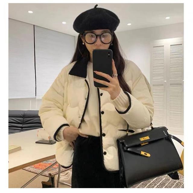 | トレンドの襟配色がこなれた印象の中綿ジャケット! 中綿はふんだんに入っているので防寒性も抜群です。 フロントサイドに便利なポケット付き。 配色襟がポイントになって、顔周りは爽やかに。 ゆったりとしたシルエットで、厚手のインナーの上からでもごわつかず羽織っていただけます。 シンプルなデニム合わせはもちろん、ロングスカートなどフェミニンなアイテムとの合わせも◎ | |