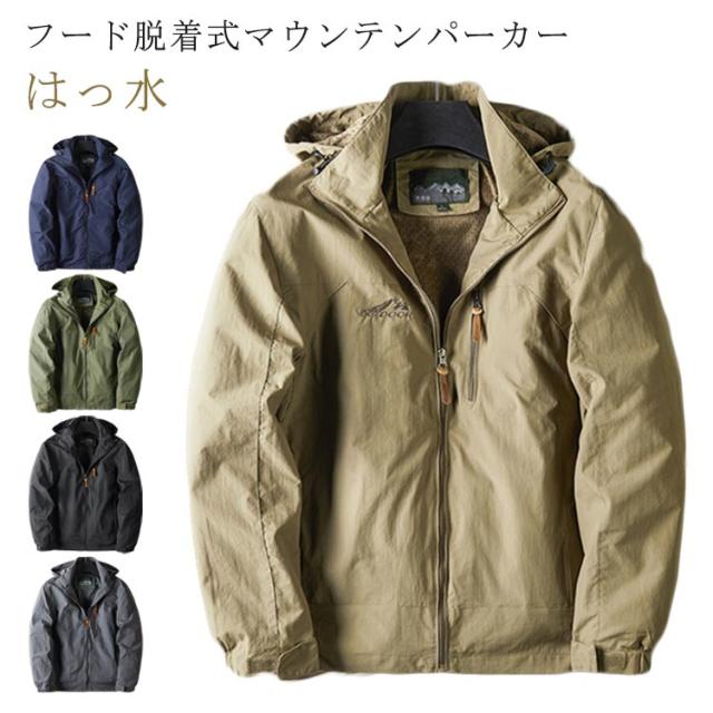 メンズ マウンテンパーカー ジャケット 胸ポケット 撥水 秋服 ジャンパー フード 脱着可 秋 ブルゾン 防寒着 暖かいマンパ マウンテンパーカー フード付き 冬 冬服 大きいサイズ アウトドアウエア ウインドブレーカー 雨具 登山 服