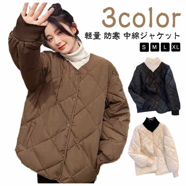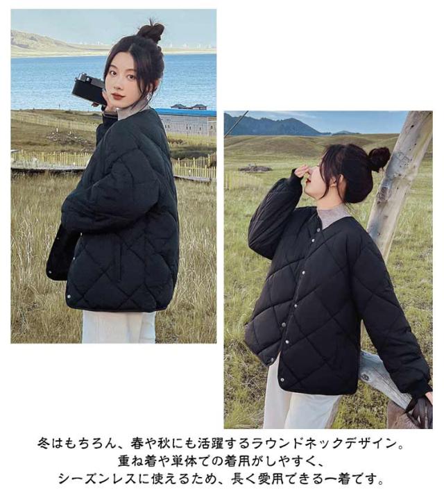 コート 中綿ジャケット レディース アウター 羽織り 上着 長袖 大きいサイズ 秋 冬 キルティング ジャケット ブルゾン ショート丈 ノーカラー 無地 中綿 キルト ショートコート キルティングジャケット 軽量 防寒 おしゃれ 送料無料
