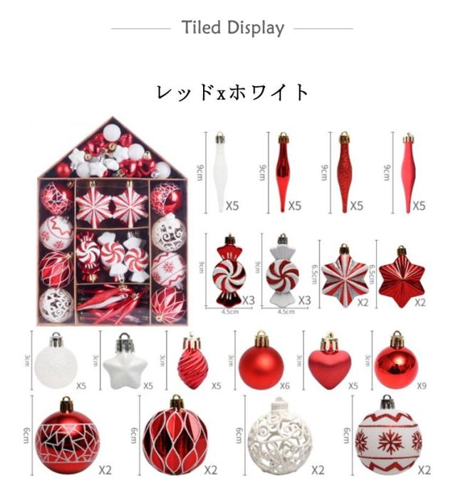 | 70pcs キュートで華麗なクリスマスオーナメント 北欧風のオーナメントセットでお手持ちのツリーがキュートと華麗に大変身♪ 家族や友たち、恋人などと一緒にツリーを飾り付けるでも、パーティーにクリスマスの雰囲気を添ってもOKです。手入らず、箱から出してすぐ簡単に飾り付けられます。 いろいろなシーンにもご利用いただけます。おうちのリビングや玄関、店舗ディスプレイやオフィスのムードづくりにも大活躍。 多様な種類でクリスマスツリーを華麗に飾ることができます。 ギフト包装を用意しておりますので、家族、友達にプレゼントとして贈るのも最適です。 | |