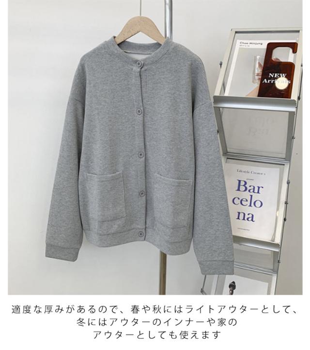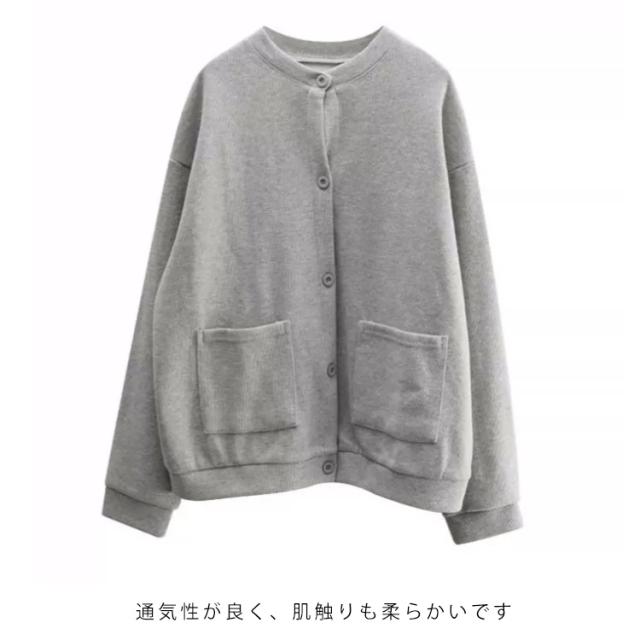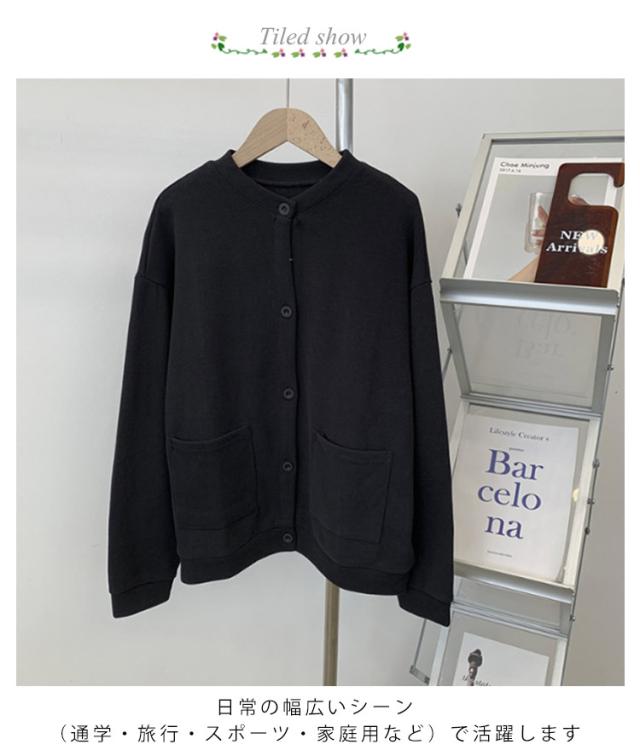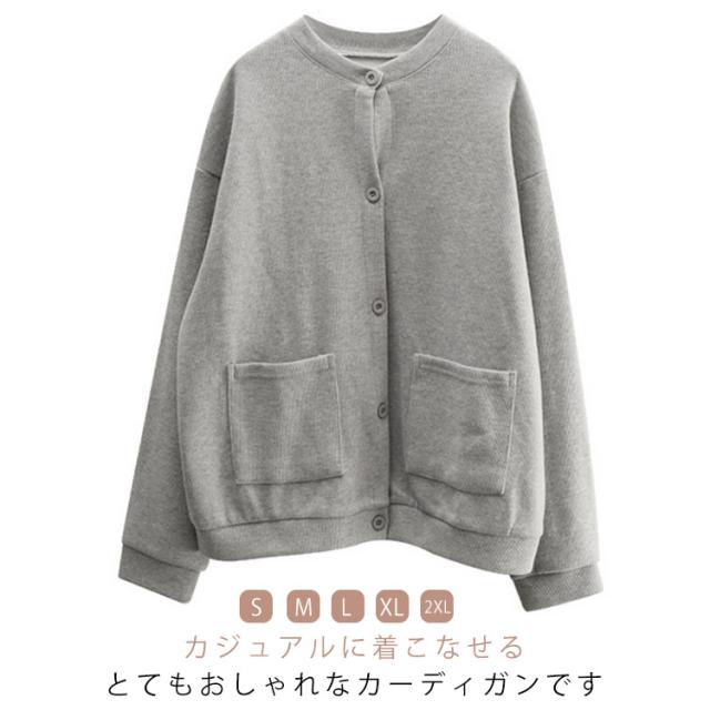 レディース カーディガン カーディガン 綿 カーデ 羽織り クルーネック 丸首 大きいサイズ 長袖 コート スウェット トレーナー スエット コットン ポケット 体型カバー ゆったり