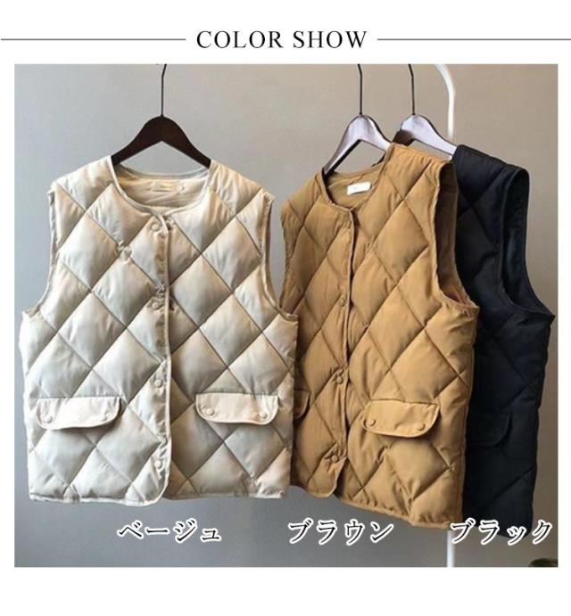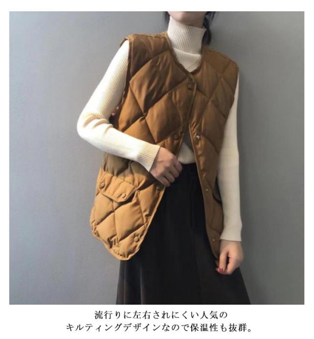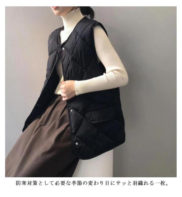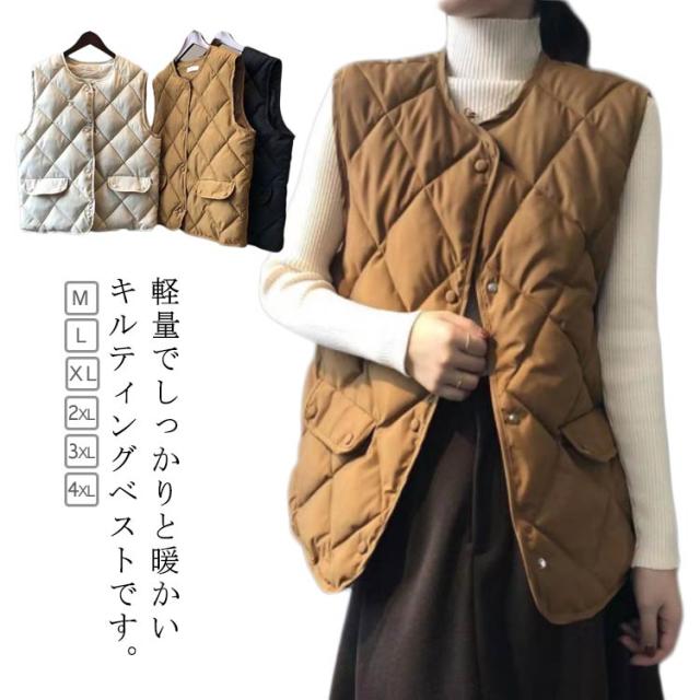 軽量 レディース 中綿入り あったか キルティングベスト インナーベスト 羽織り 寒さ対策 ライトダウン ノースリーブ 防寒 暖かい 秋冬 ゆったり 前開き 中綿ベスト 通勤 通学 無地