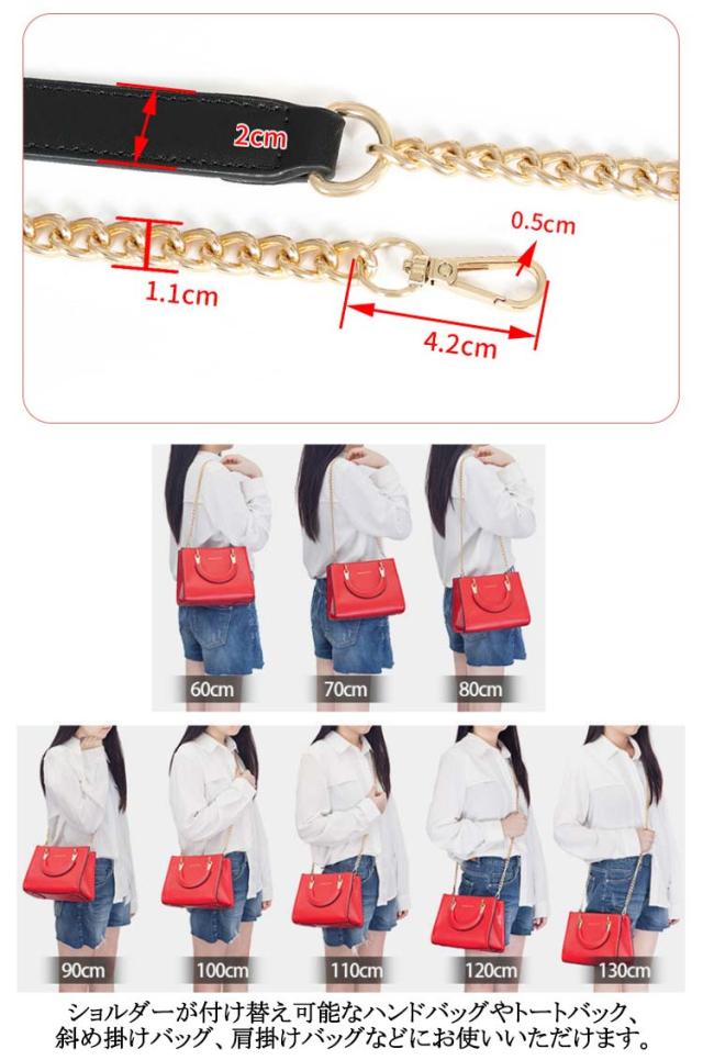 | 60cm 80cm 100cm 110cm 120cm 130cm 140cm 大人可愛い付け替え用バッグストラップ! チェーンとPUレザーのミックスがお洒落なバッグストラップ! 手持ちのバッグに付け替えるとあっという間に違うバッグに大変身! ショルダーが付け替え可能なハンドバッグやトートバック、斜め掛けバッグ、肩掛けバッグなどにお使いいただけます。 | |
