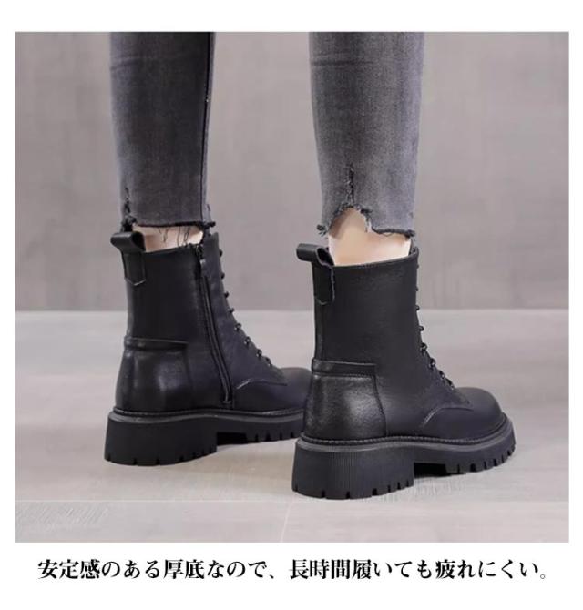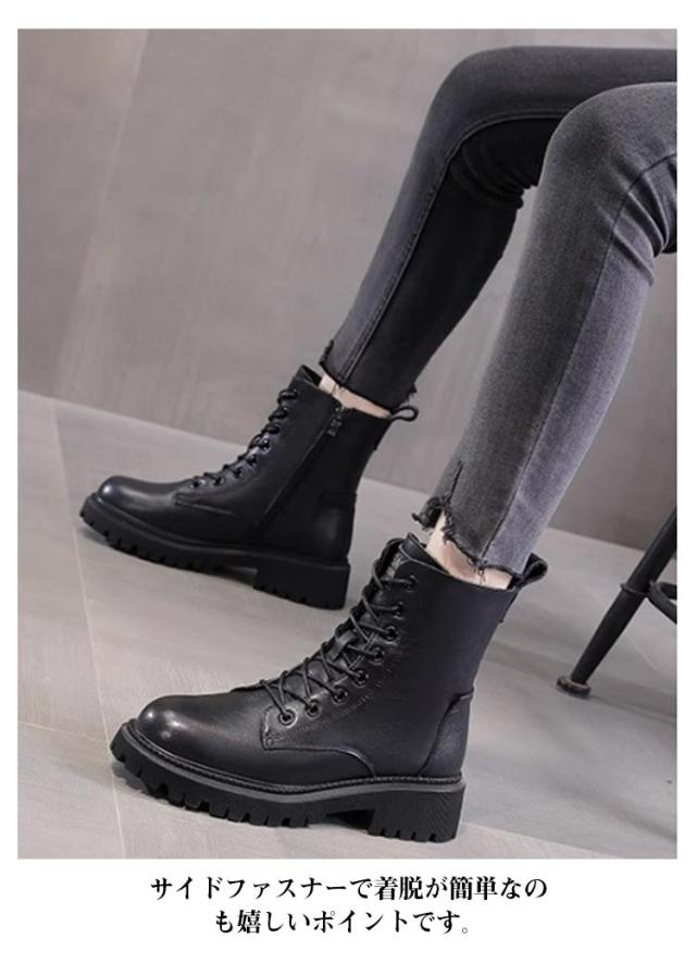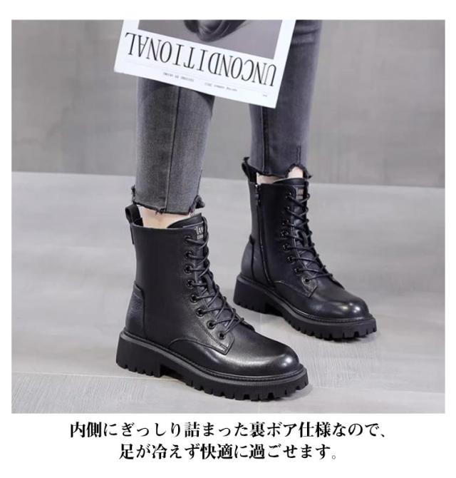 厚底 ショートブーツ ワークブーツ 裏起毛 レディース 冬ブーツ PU ショートブーツ 裏ボアブーツ 暖かい ムートンブーツ フェイクレザー レースアップ ファスナー ショート ブーツ ミドル ローヒール 美足 ブーツ 春秋 靴 シンプル