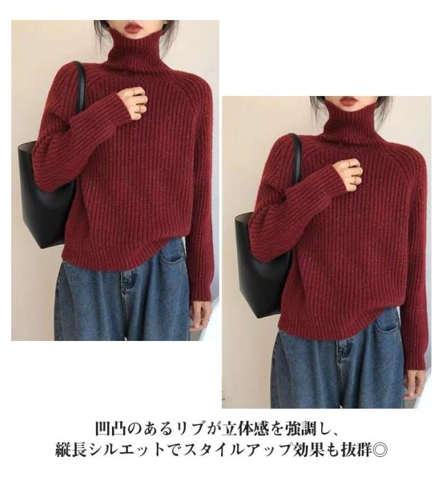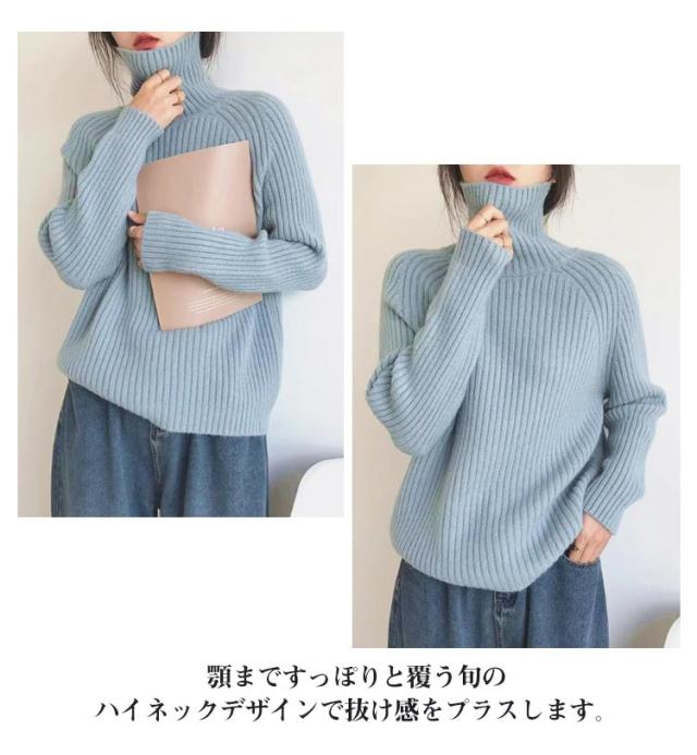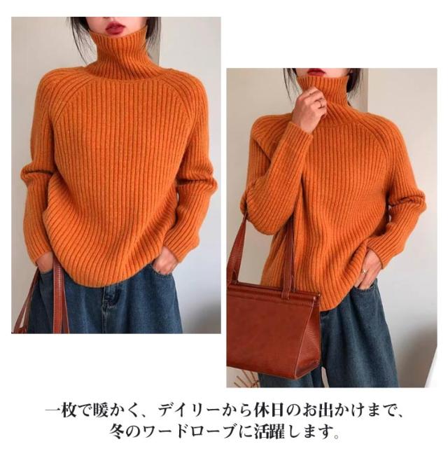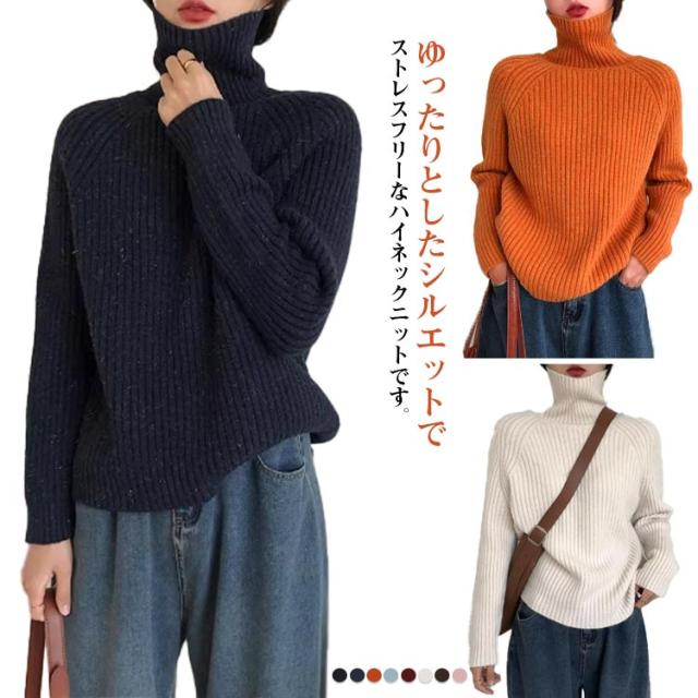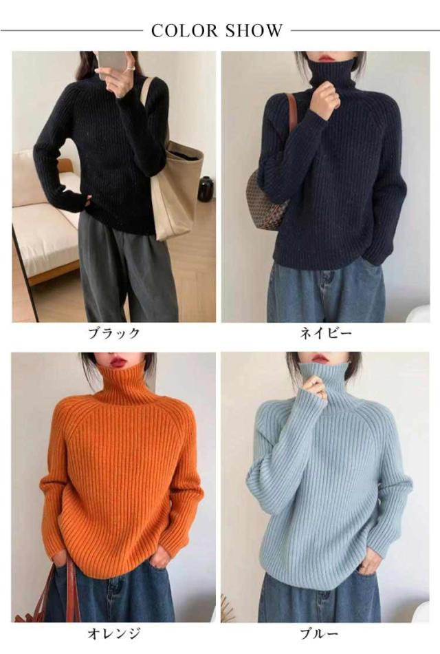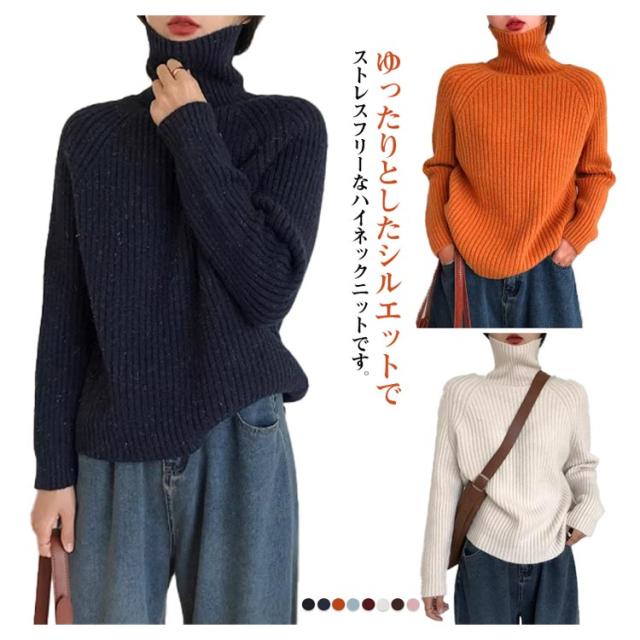 タートルネック リブニット プルオーバー ボトルネック ハイネックニット ボリュームニット ざっくりニット ニット セーター レディース ゆったり プルオーバー レイヤード 小顔 タートル ゆったり 軽量 リブ 秋 冬 ブラック ネイビー オレンジ