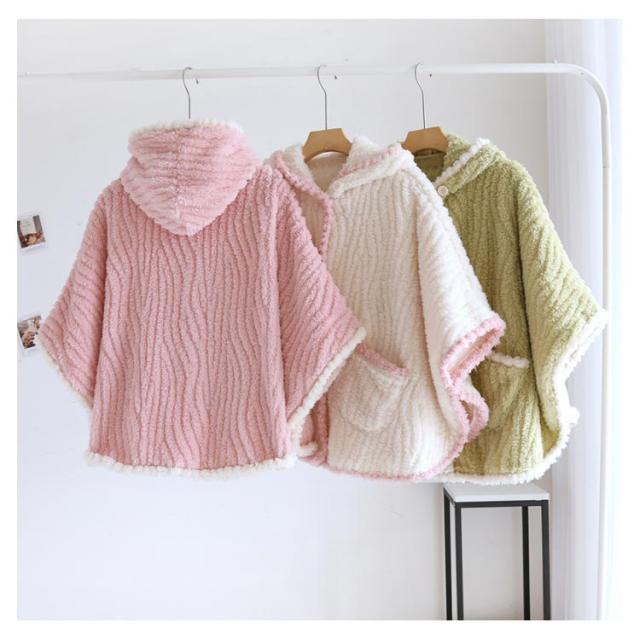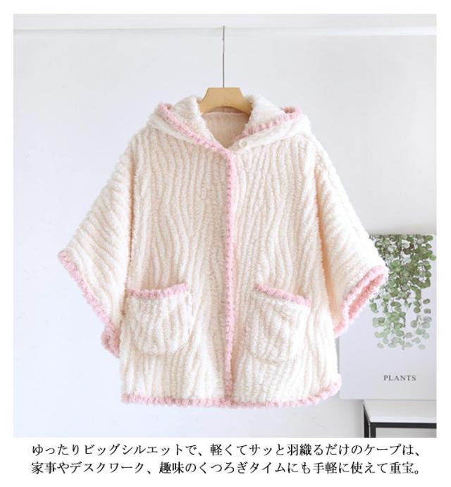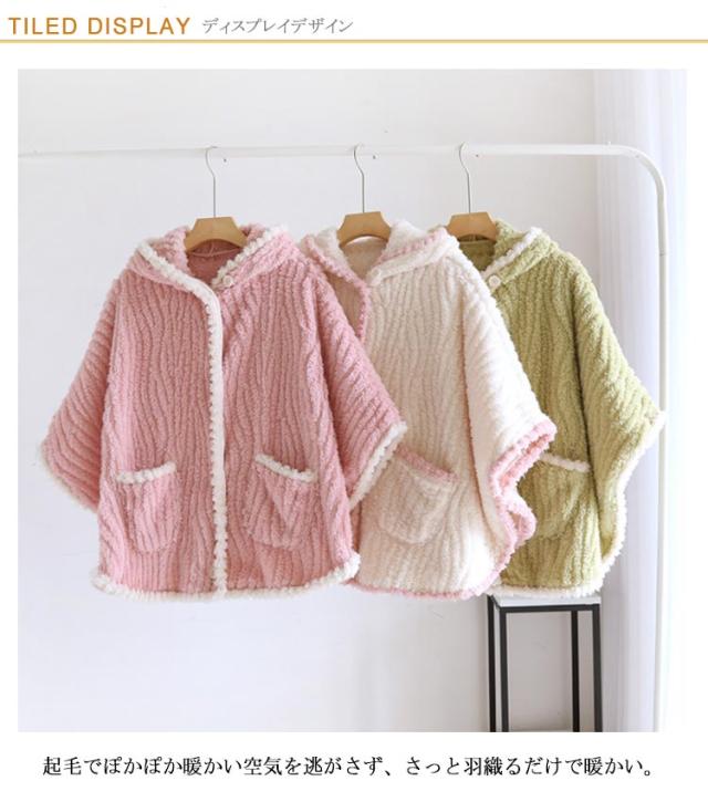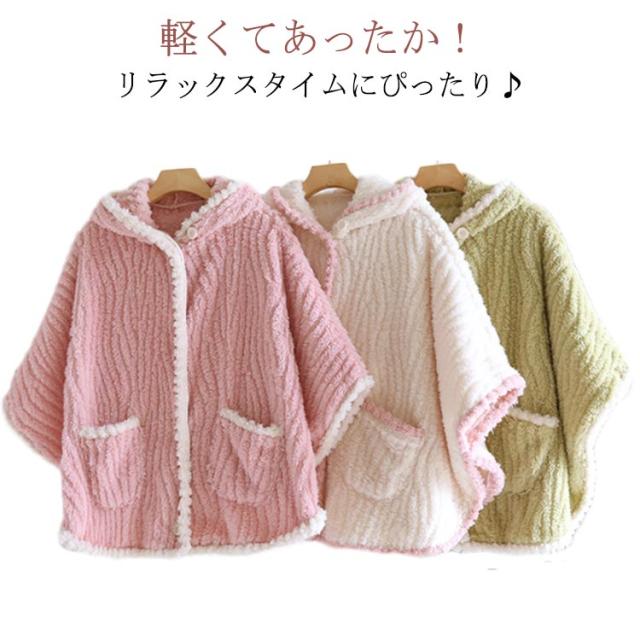 ルームウェア あったか もこもこ ケープ ゆったり ポンチョ 半袖 あったか 袖付き ベスト ボアベスト ふわふわ 部屋着 着る毛布 前開き レディース パジャマ 上着 可愛い フード付き ガウン 羽織り 寒さ対策 授乳