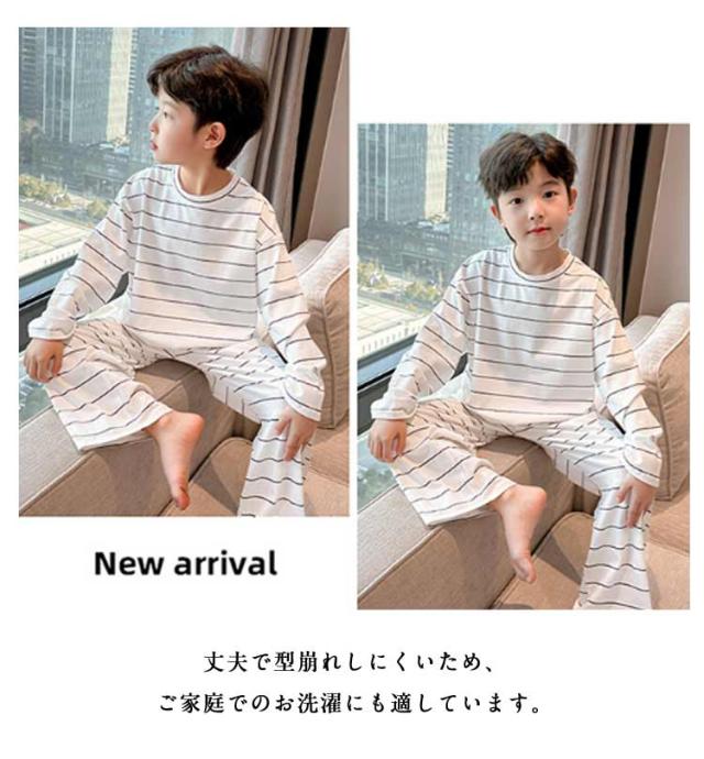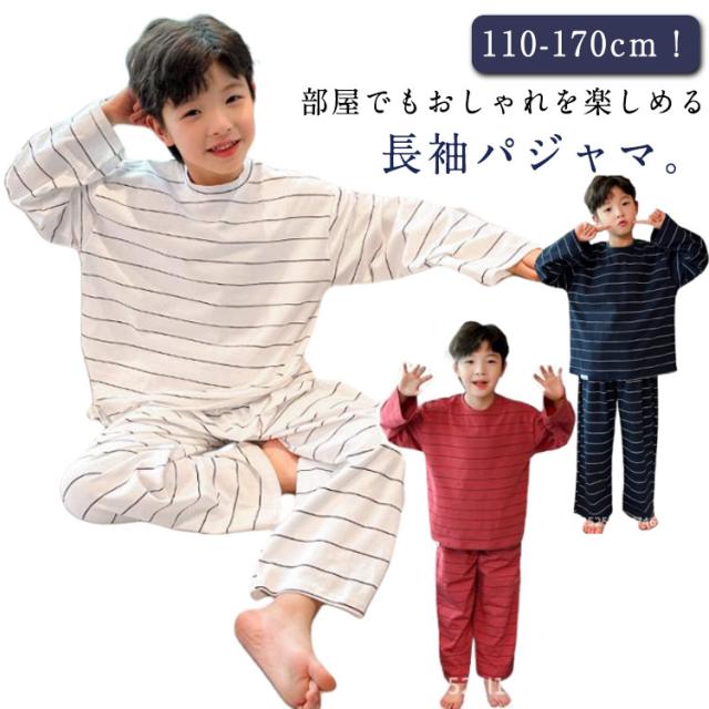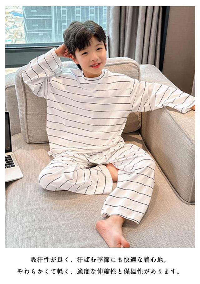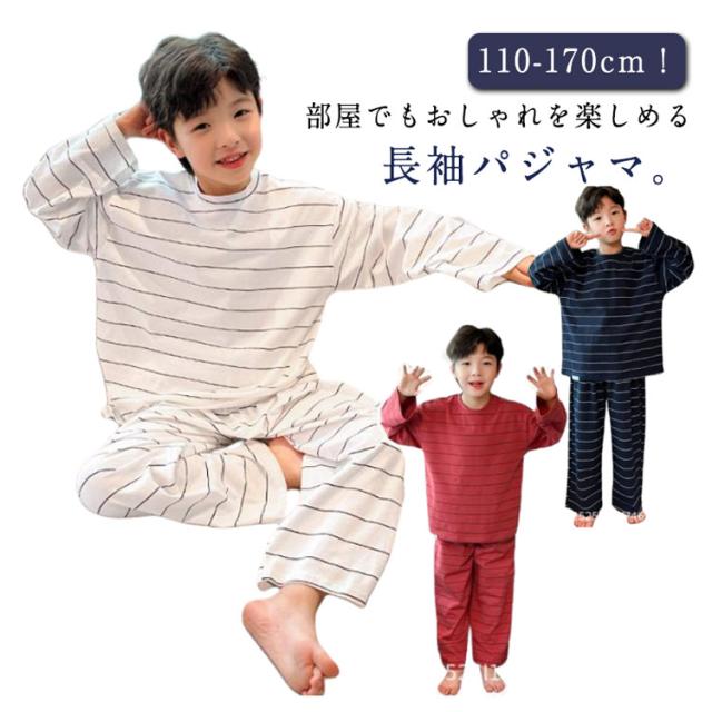長袖パジャマ 寝巻き 2点セット パジャマ 長ズボン 上下セット ボーイズ ガールズ 男女兼用 子供服 長袖 Tシャツ キッズ 男の子 ルームウェア セットアップ 子供 キッズ パジャマ 110 ジュニア 部屋着 春秋冬 入園準備 ボーダー 120 130 140 150 160 170