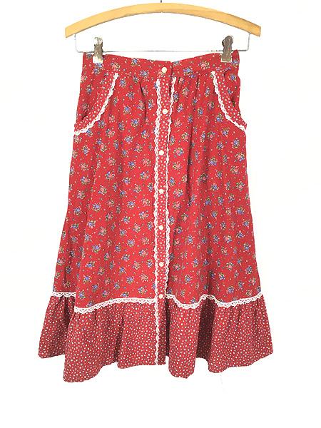 レディース 古着 80s Eben 花 レース デザイン ギャザー フレア スカート ロング丈 S位 古着