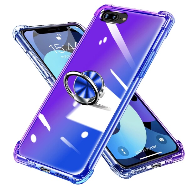 iPhone 8 Plus用 ケース iPhone 7 Plus用 ケース リング クリア グラデーション色 TPU ソフト ストラップホール付き アイフォン 7 Plus/8 Plus用 ケース 耐衝撃 スマホケース 耐衝撃 車載ホルダー対応