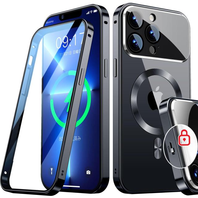 【高精度メカニカルロック和360 ° 全面保護】このiPhone 13 Pro Maxケースの上部には高精度のメカニカルロックが搭載されており、1回のスライドで1秒でロック/ロック解除が可能です。スマホケースを両側でしっかりとロックします。落としてもスマホがケースから落ちない、iPhoneを安全にロックする。さらに、複数の素材のアップグレードにより、ロックの耐久性と精度が大幅に向上しました。このいPhone 13 Pro Maxケースの両面は硬度9hの強化ガラス製です、側面には高品質の航空アルミ合金製を採用した高級感のある作り。前面、背面、側面、レンズをカバーできます。スクリーンプロテクターとレンズプロテクターを個別に購入するコストを節約し、ワンストップソリューションを提供します。