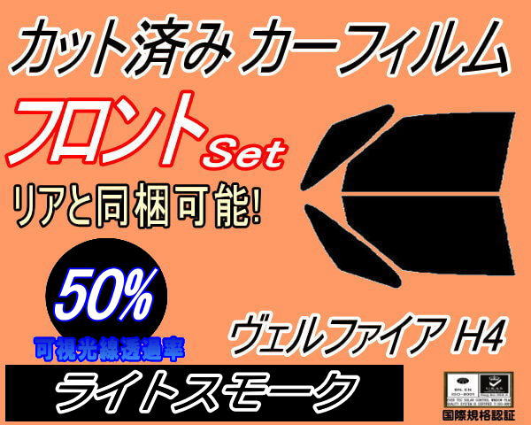 【送料無料】フロント (b) ヴェルファイア H4 (50%) カット済みカーフィルム 運転席 助手席 三角窓 左右セット スモークフィルム フロントドア 車種別 車種専用 成形 フイルム 日よけ ガラス ウインドウ 紫外線 UVカット 40系 TAHA40W TAHA45W AAHH40W AAHH45W トヨタ