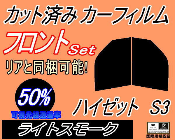 【送料無料】フロント (b) ハイゼット S3 (50%) カット済みカーフィルム 運転席 助手席 三角窓 左右セット スモークフィルム フロントドア 車種別 スモーク 車種専用 成形 フイルム 日よけ 窓 ガラス ウインドウ 紫外線 UVカット S320G 320V S330G 330V S321V ダイハツ