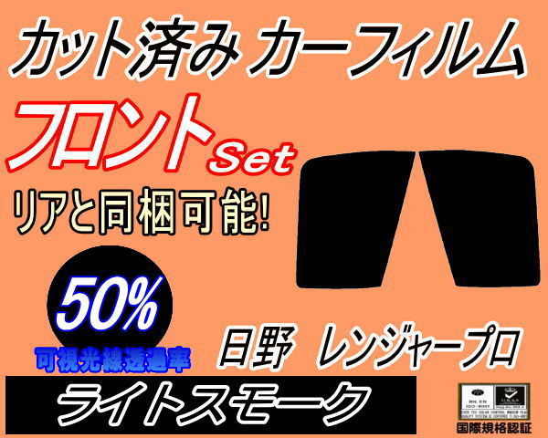 【送料無料】フロント (b) 日野 レンジャープロ (50%) カット済みカーフィルム 運転席 助手席 三角窓 左右セット スモークフィルム フロントドア 車種別 スモーク 車種専用 成形 フイルム 日よけ 窓 ガラス ウインドウ 紫外線 UVカット ダンプ トラック