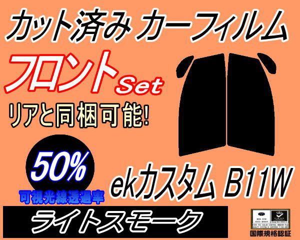 【送料無料】フロント (s) ekカスタム B11W (50%) カット済みカーフィルム 運転席 助手席 三角窓 左右セット スモークフィルム フロントドア 車種別 スモーク 車種専用 フイルム 日よけ 窓 ガラス ウインドウ 紫外線 UVカット B11 ワゴン カスタム ekワゴンも適合 ミツビシ
