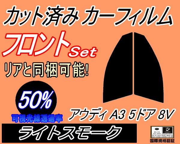 【送料無料】フロント (s) アウディ A3 5ドア 8V (50%) カット済みカーフィルム 運転席 助手席 三角窓 左右セット スモークフィルム フロントドア 車種別 スモーク 車種専用 成形 フイルム 日よけ 窓 ガラス ウインドウ 紫外線 UVカット 8VCJSF 8VCPT 8VCXS 8VCZPF