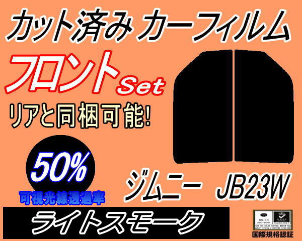 【送料無料】フロント (s) ジムニー JB23W (50%) カット済みカーフィルム 運転席 助手席 三角窓 左右セット スモークフィルム フロントドア 車種別 スモーク 車種専用 成形 フイルム 日よけ 窓 ガラス ウインドウ 紫外線 UVカット JB23系 スズキ