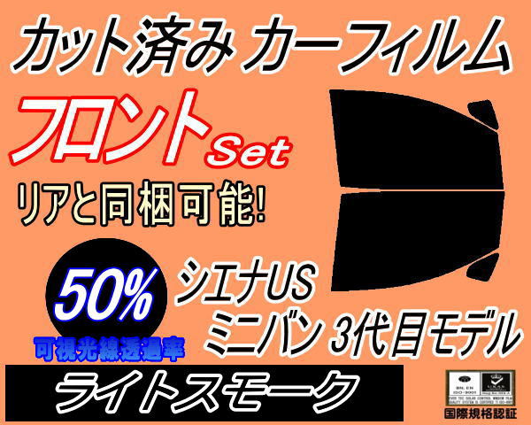 フロント (b) シエナUS ミニバン 3代目モデル (50%) カット済みカーフィルム 運転席 助手席 三角窓 左右セット スモークフィルム フロントドア 車種別 スモーク 車種専用 成形 フイルム 日よけ 窓 ガラス ウインドウ 紫外線 UVカット トヨタ