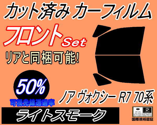 フロント (b) ノア ヴォクシー R7 70系 (50%) カット済みカーフィルム 運転席 助手席 三角窓 左右セット スモークフィルム フロントドア 車種別 スモーク 車種専用 成形 フイルム 日よけ 窓 ガラス ウインドウ 紫外線 UVカット ZRR70G ZRR75G ZRR70W ZZR75W ZRR75W