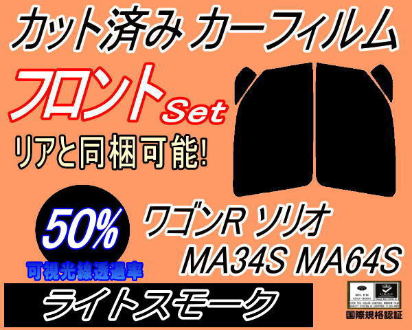 フロント (b) ワゴンR ソリオ MA34S MA64S (50%) カット済みカーフィルム 運転席 助手席 三角窓 左右セット スモークフィルム フロントドア 車種別 スモーク 車種専用 成形 フイルム 日よけ 窓 ガラス ウインドウ 紫外線 UVカット MA MA34S MA64S スズキ