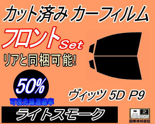 フロント (s) ヴィッツ 5ドア P9 (50%) カット済みカーフィルム 運転席 助手席 三角窓 左右セット スモークフィルム フロントドア 車種別 スモーク 車種専用 成形 フイルム 日よけ 窓 ガラス ウインドウ 紫外線 UVカット SCP90 NCP91 NCP95 KSP90 KSP91 トヨタ