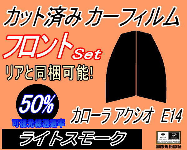 フロント (s) カローラアクシオ E14 (50%) カット済みカーフィルム 運転席 助手席 三角窓 左右セット スモークフィルム フロントドア 車種別 スモーク 車種専用 成形 フイルム 日よけ 窓 ガラス ウインドウ 紫外線 UVカット NZE141 ZRE142 NZE144 トヨタ