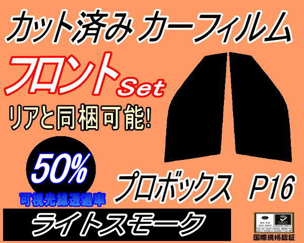 フロント (s) プロボックス P16 (50%) カット済みカーフィルム 運転席 助手席 三角窓 左右セット スモークフィルム フロントドア 車種別 スモーク 車種専用 成形 フイルム 日よけ 窓 ガラス ウインドウ 紫外線 UVカット NCP160V NCP165V NSP160V トヨタ