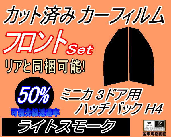 フロント (s) ミニカ 3ドア ハッチバック H4 (50%) カット済みカーフィルム 運転席 助手席 三角窓 左右セット スモークフィルム フロントドア 車種別 スモーク 車種専用 成形 フイルム 日よけ 窓 ガラス ウインドウ 紫外線 UVカット H42A H47A H42V ミツビシ