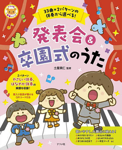 はなやか伴奏に歌を重ねたフルサイズ曲を、スマートフォンなどで楽譜ページのQRコードを読み込んで聴くことができます。
