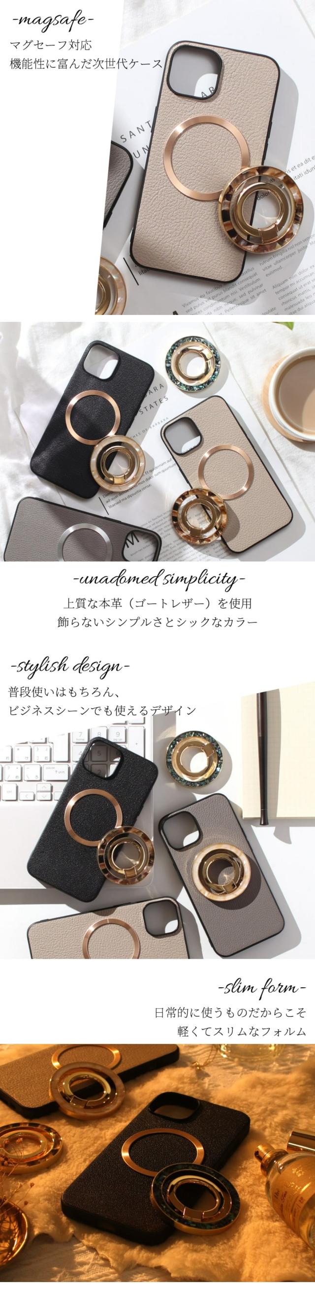 iphoneケース レザー iphone17 iphone16 iphone15 iphone14 リング付き 本革 17 16 15 14 13 mini マグセーフ対応 magsafe対応 ゴートレザー air 16e 16pro 15pro 14pro スマホリング iphoneケース アイフォンケース スタンド 16プロ 13ミニ 大人かわいい べっ甲柄 送料無料