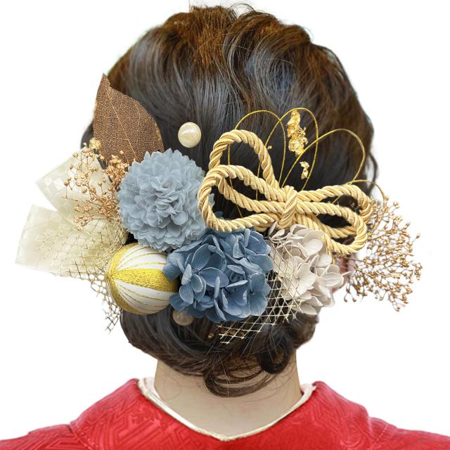 髪飾り 七五三 成人式 プリザーブドフラワー ドライフラワー 造花 パール 水引き かすみ草 リボン スケルトンリーフ 組紐 和玉 紫陽花 菊