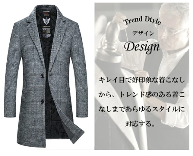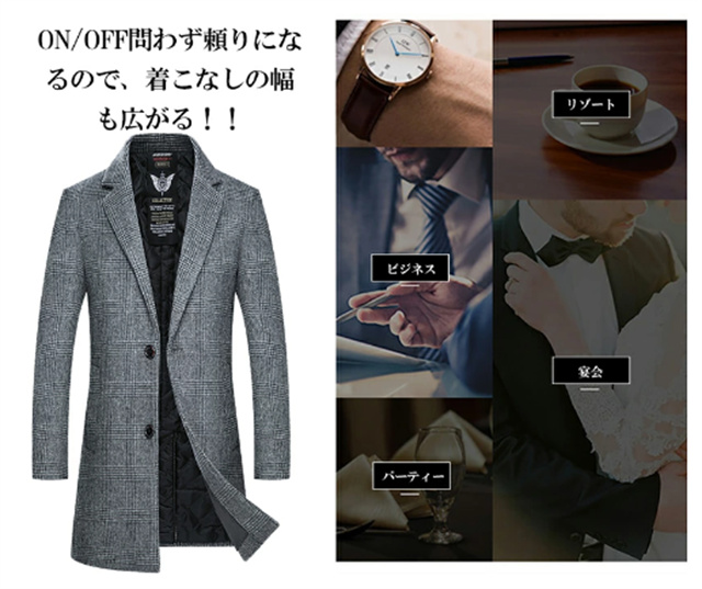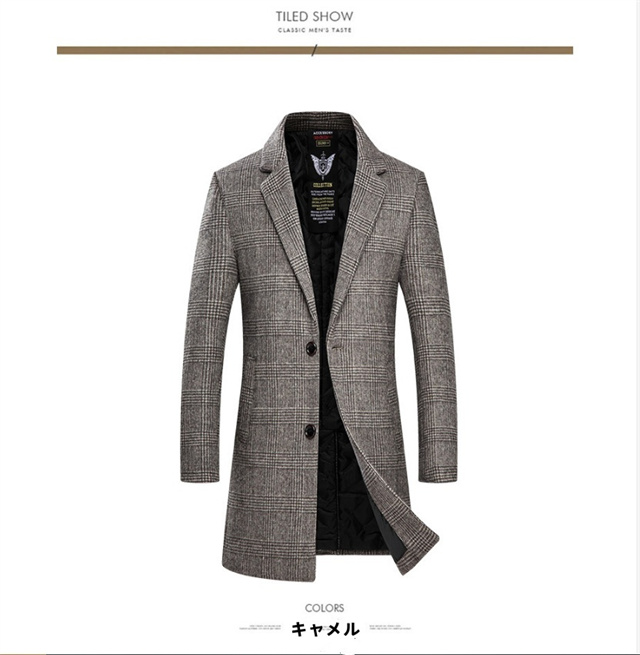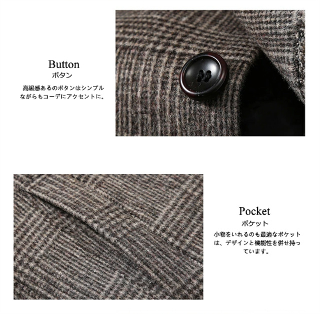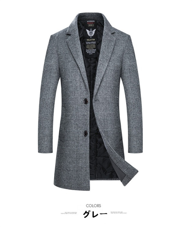 チェスターコート ウールコート ロングコート 中綿 テーラードジャケット ロング ジャケット コート メンズ アウター ビジネス カジュアル チェック スリム 暖か 冬服