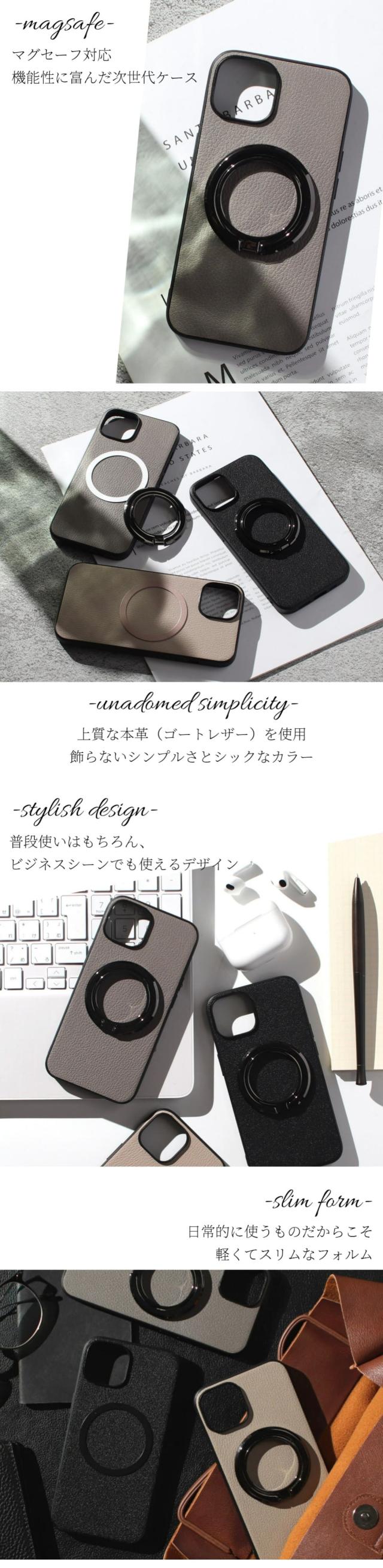 iphone ケース レザー iphone17 iphone16 iphone15 iphone14 リング付き 本革 17 16 15 14 13 mini マグセーフ対応 magsafe対応 メンズ ゴートレザー アイフォン air 16e 16pro 15pro 14pro リング iphoneケース スタンド マグネット 17プロ 16プロ スリム シンプル 送料無料