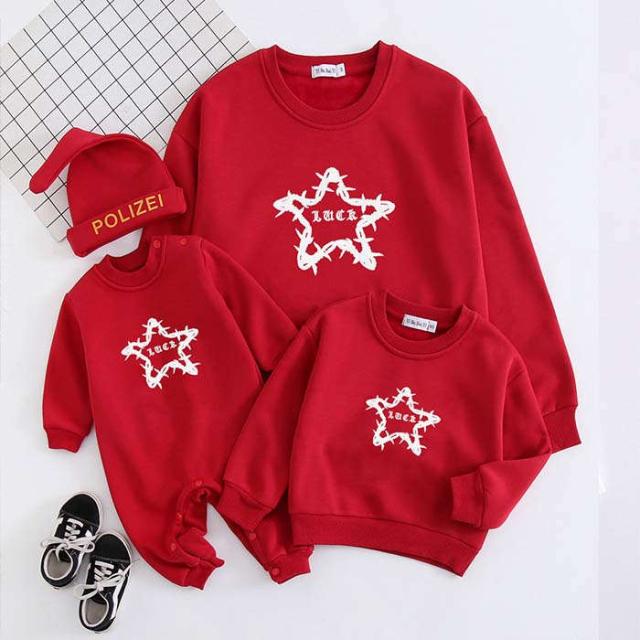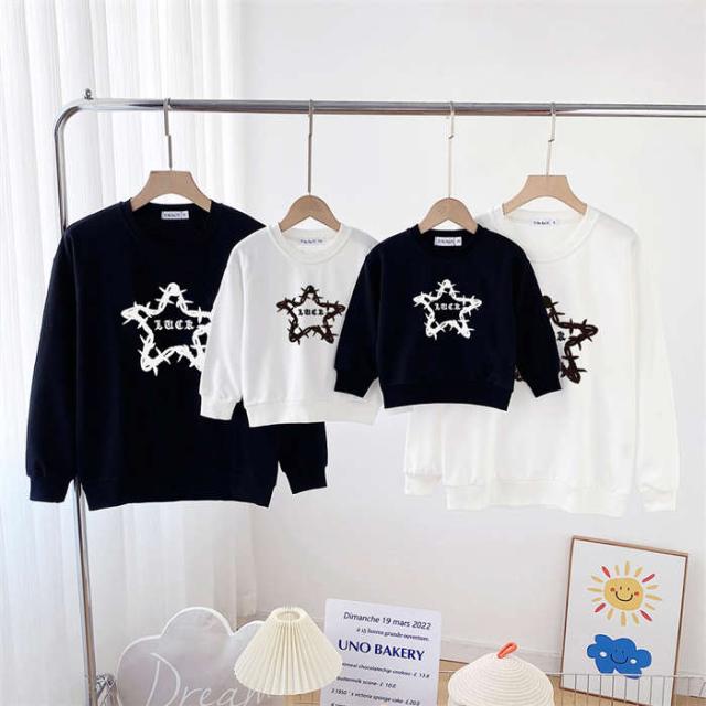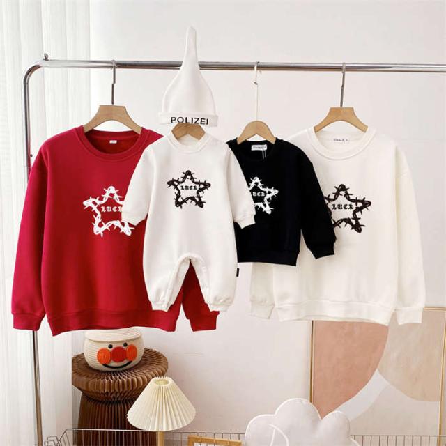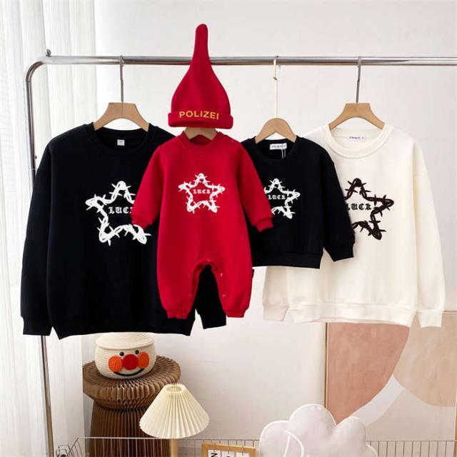 商品名:親子 ペアtシャツ トレーナー 星柄 tシャツ ロンパース トップス 長袖 リンクコーデ メンズTシャツ レディースTシャツ 親子ペアルック 女の子 男の子 ペアルック 親子服 親子お揃い服 ベビー服 子供服 赤ちゃん シンプル おしゃれ 大きいサイズ クリスマス プレゼント