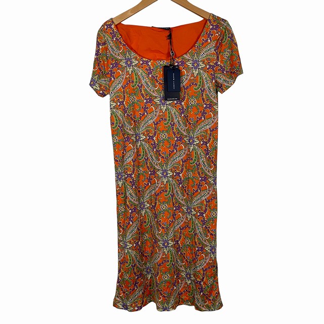 【中古】ラルフローレン RALPH LAUREN タグ付き ワンピース ペイズリー柄 半袖 ひざ丈 オレンジ M レディース