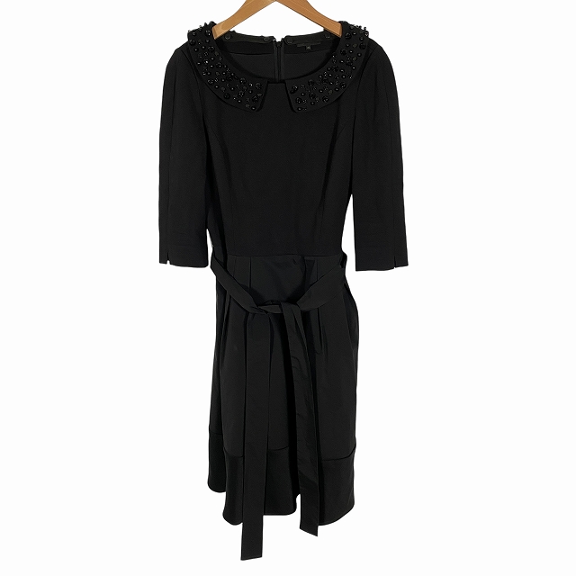 【中古】トゥービーシック TO BE CHIC 2WAY ワンピース ドレス 5部袖 ひざ丈 ビジュー 黒 ブラック 40 L相当 レディース