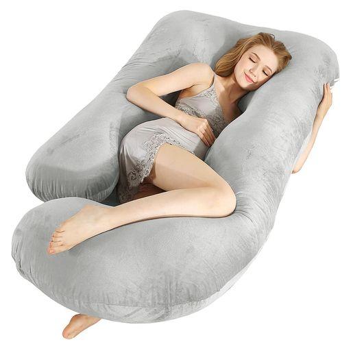 ROCYJULIN 抱き枕 妊婦 だきまくら 低反発授乳クッション 多機能U字枕 マタニティ抱き枕 上半身を包み込むまくら ポリエステル 寝姿勢を保つ 全身サポート カバー付き ライトグレー