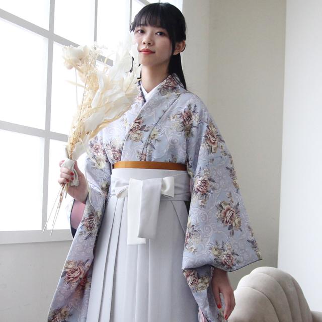 卒業式 袴 レンタル 女 大学 フルセット 袴セット 女性 卒業式袴セット 袴フルセットレンタル シンプル 「ブルーグレーに薔薇」 大人