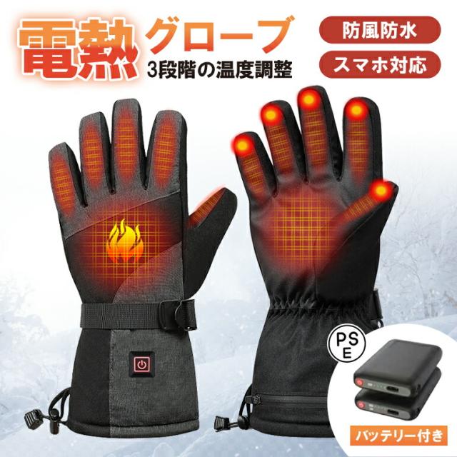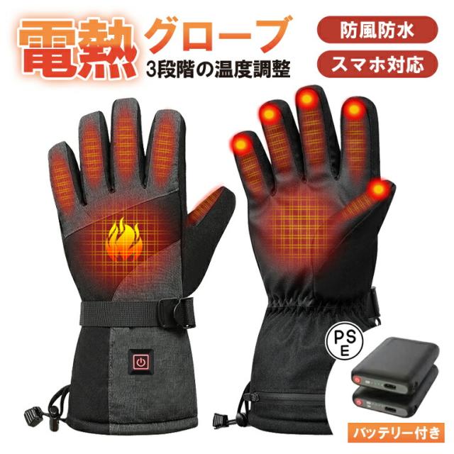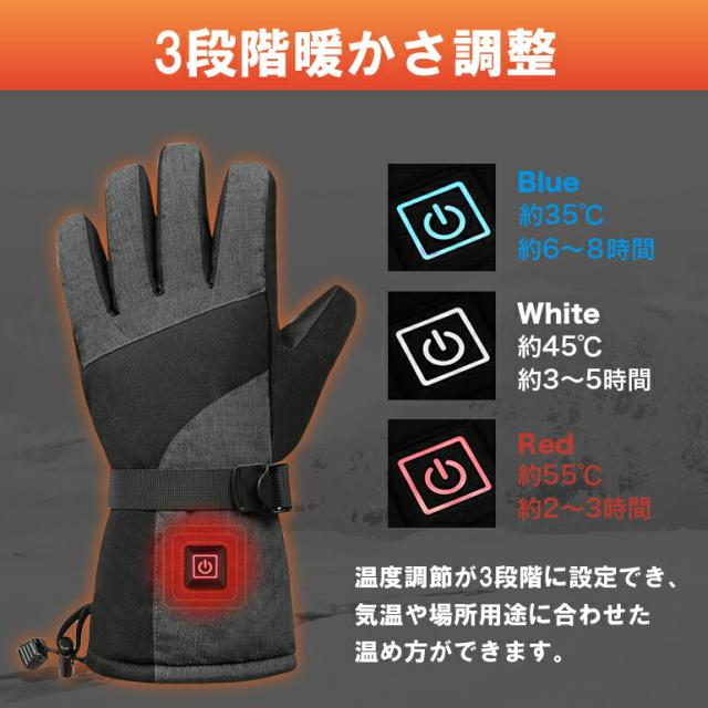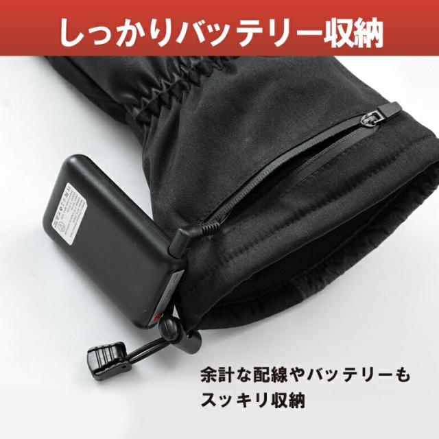 防寒 防水 電熱グローブ 5000mahバッテリー×2個付き