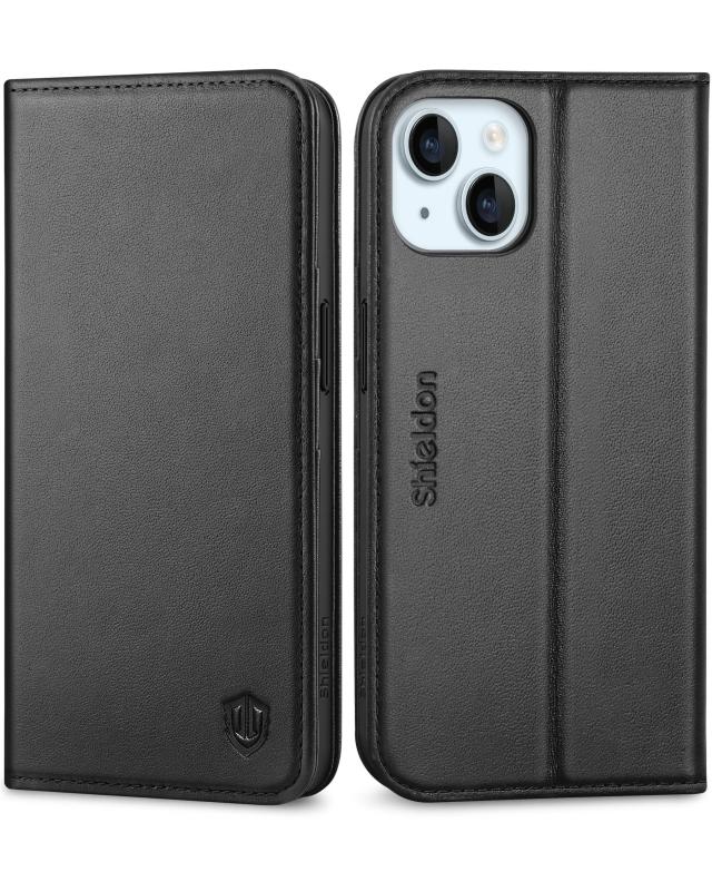 SHIELDON iPhone 15 対応ケース 手帳型 本革 あいふぉん15 スマホカバー 衝撃吸収 TPU素材 カード収納 横置きスタンド機能 マグネット内