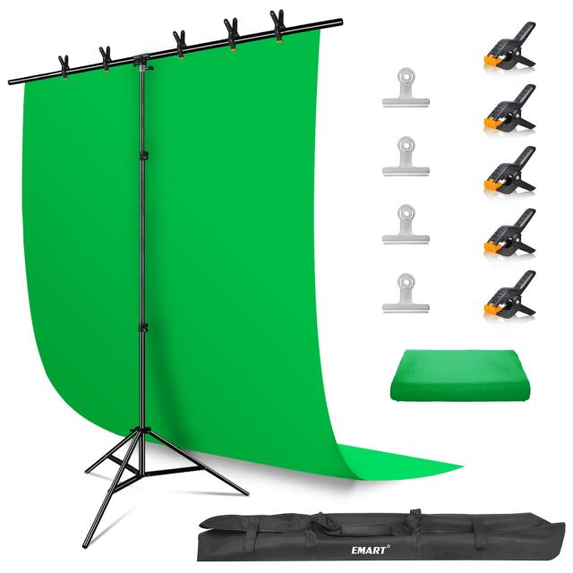 EMART 背景スタンド T字背景スタンド 210x200m グリーンバック150x200cm 撮影スタンドクロマキー布 幅、高さ調節可能 背景布 グリーンバ