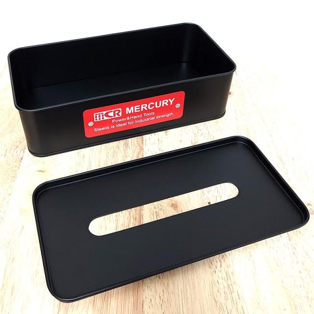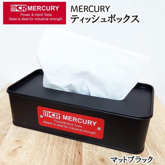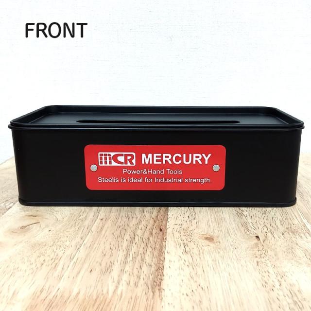 ティッシュケース MERCURY シンプル アメリカン マーキュリー ロゴ かわいい おしゃれ ブラック ボックス 箱 ブリキ製 レトロ