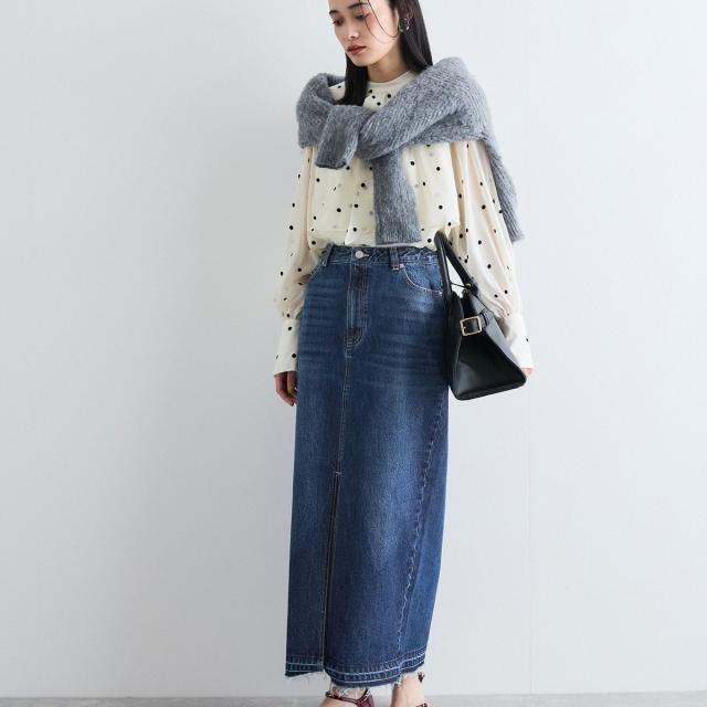 シーズンレスで履けるデニムスカート。春先まで大活躍間違いなし!