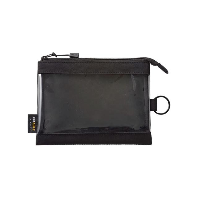 耐久性に優れたコーデュラの生地を使用したクリヤーケース。 開閉部は大きく開いて取り出しやすいワイドオープンタイプ 表面は透明ビニー ルなので何を入れたかすぐに確認できます。見せたくないものは裏面のファスナーポケットへ。 取り外し可能なリング付きなので吊り下げておくことができます。