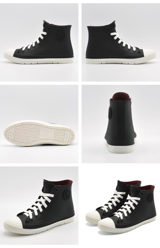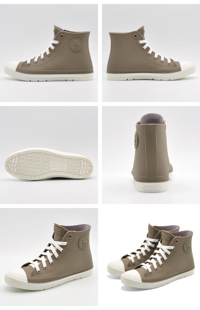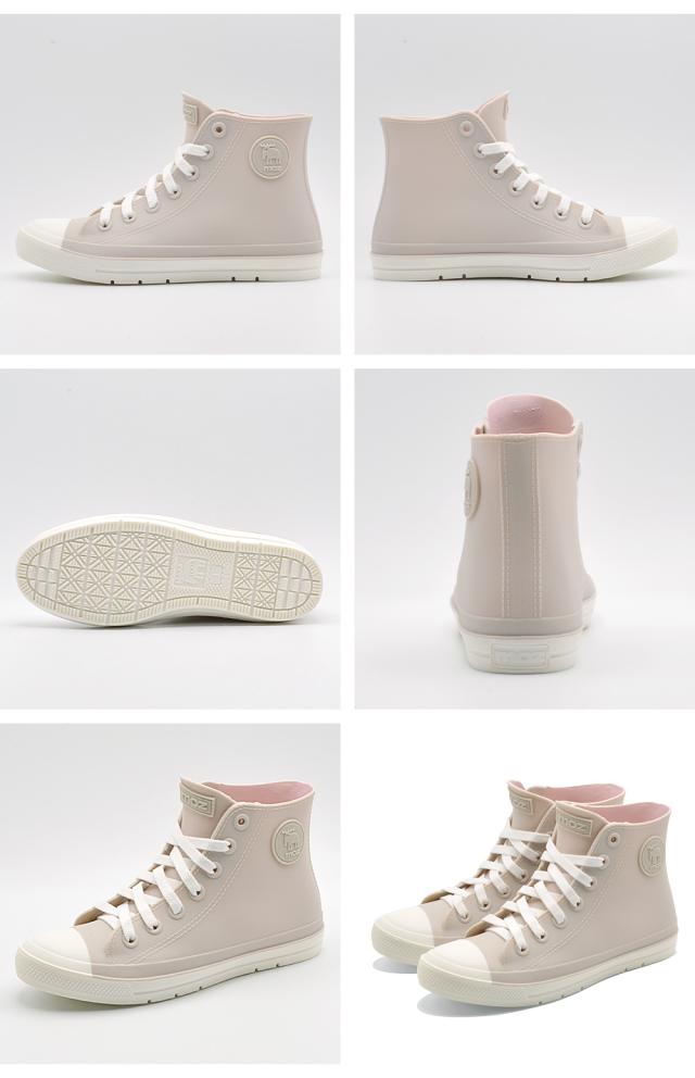 ハイカットスニーカーデザインのレインシューズ。