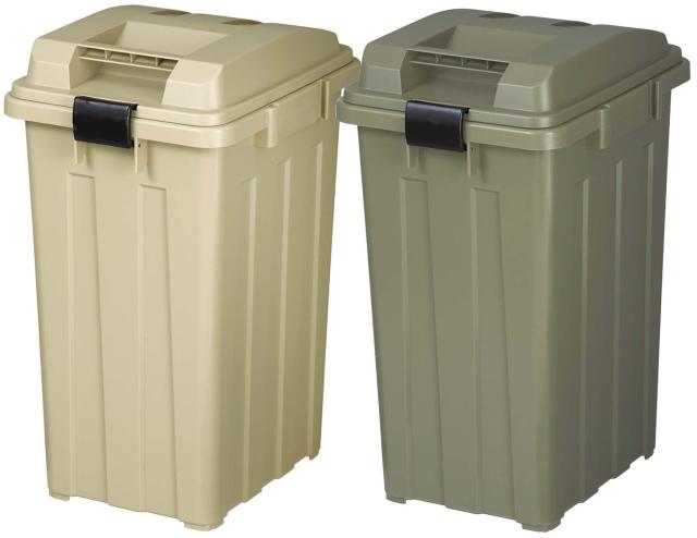 【ネット限定】屋外の景観になじむカラーコンセプト。45L 2個セット。 ハンドル付きで開けやすいバックル付きでしっかりロックできます。 差し込むだけで異なるサイズ(70L、90L)もしっかり連結できます。 連結することで屋外でも風に飛ばされたりしにくくなります。 異なるカラーでわかりやすく分別できます。
