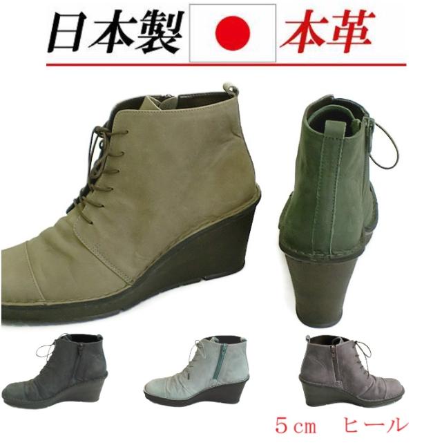 日本製 本革 ショートブーツ レディース ローヒール ウェッジヒール ウェッジソール レースアップブーツ レザー ブーツ ショート レースアップ カジュア ル 幅広 歩きやすい 履きやすい 疲れにくい