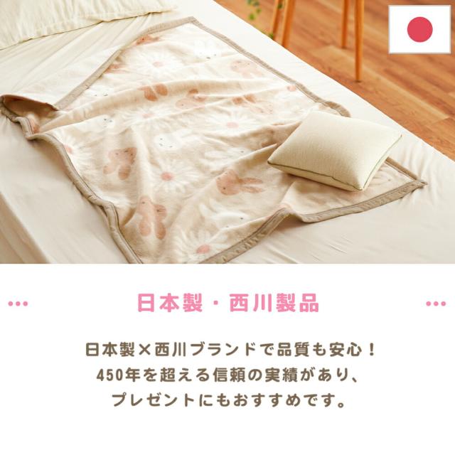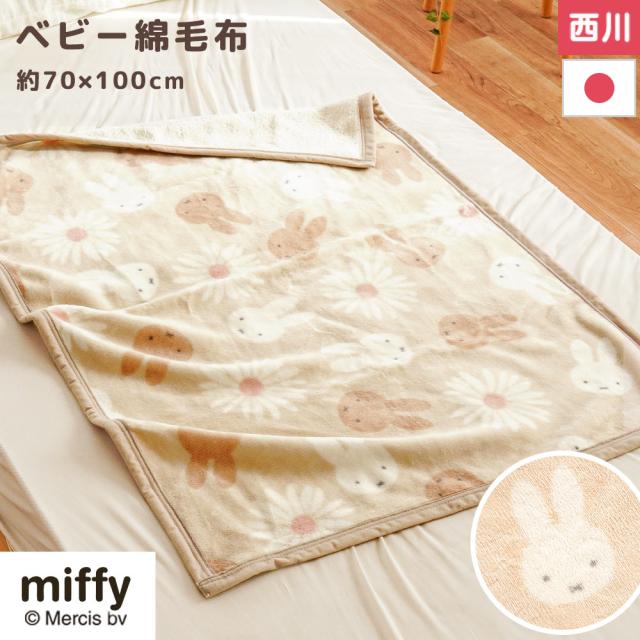 【〜12/15迄10%OFFクーポン対象】西川 ベビー 綿毛布 ミッフィー 日本製 コットンケット 70×100 毛羽部分 綿100% miffy かわいい 毛布 お昼寝 ブランケット ブルーナ
