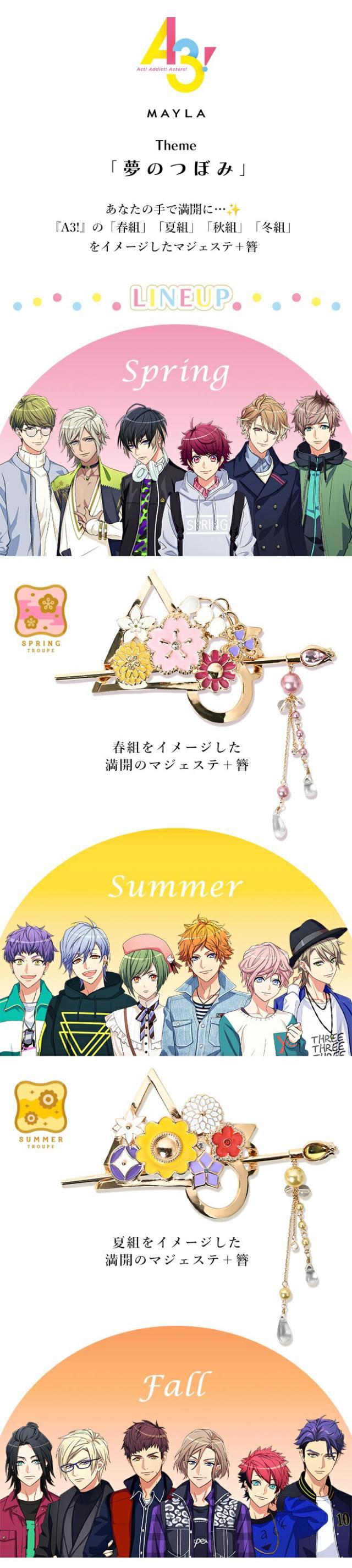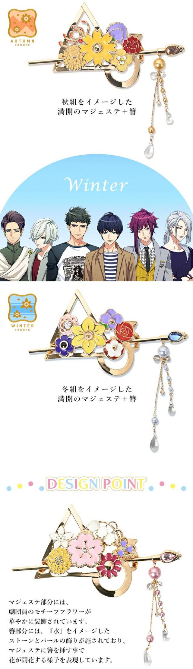 『A3!』の「春組」「夏組」「秋組」「冬組」をイメージしたマジェステ + 簪。