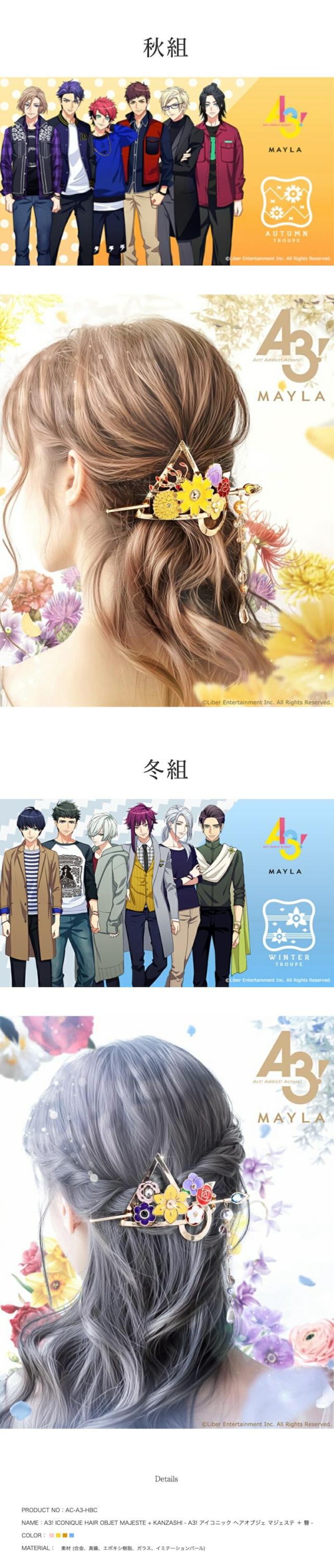 MAYLA マイラ A3! グッズ ヘアアクセサリー かんざし A3! アイコニック ヘアオブジェ マジェステ + 簪 秋組 レディース 女性 正規品 新品 公式 A3! グッズ 人気 ブランド プレゼント